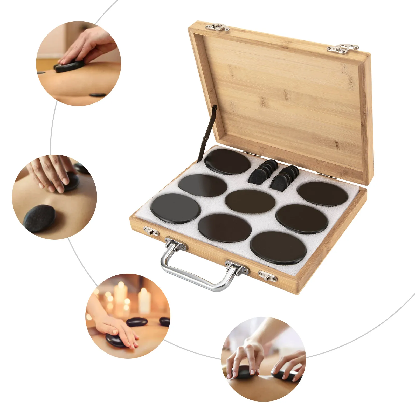 Our product is equipped with a spa hot stone heating box with handles for placing and heating the massage stones, which not only does not take up space but is also very portable.